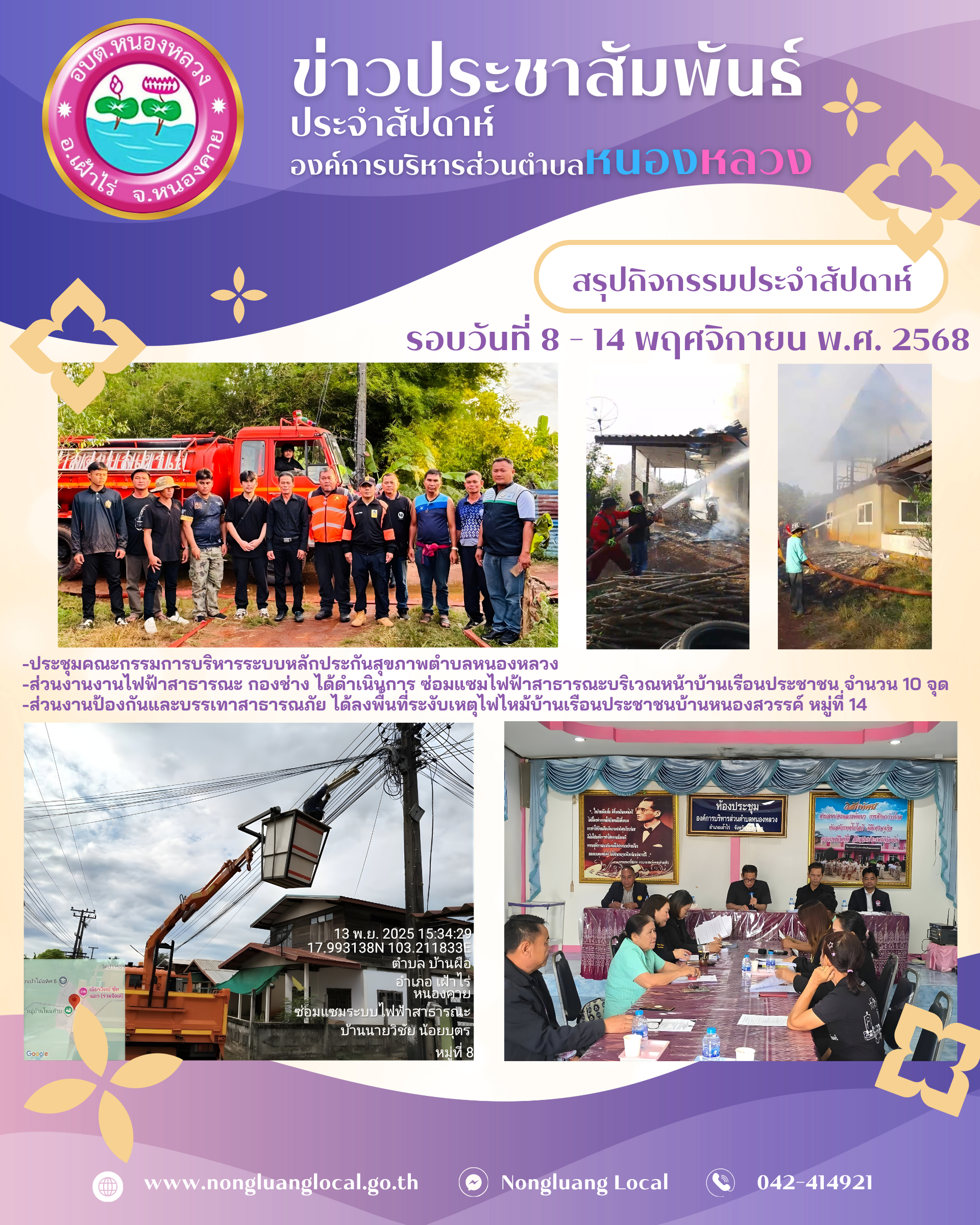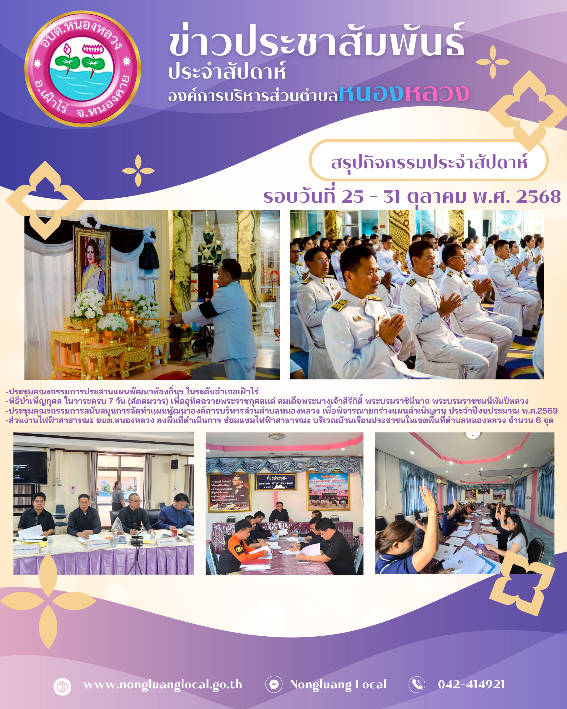 สรุปกิจกรรมประจำสัปดาห์ องค์การบริหารส่วนตำบลหนอง...