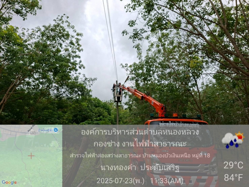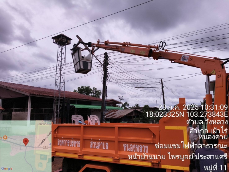 วันที่ 23 กรกฎาคม 2568 คณะผู้บริหารองค์การบริหารส่วนตำบลหนองหลวง ได้มอบหมายให้ส่วนงานไฟฟ้าสาธารณะ กองช่าง อบต.หนองหลวง ลงพื้นที่ดำเนินการ ซ่อมแซมไฟฟ้าสาธารณะ จำนวน 5 จุด ในเขตพื้นที่บ้านโนนมีชัย หมู่ที่ 11 ดังนี้