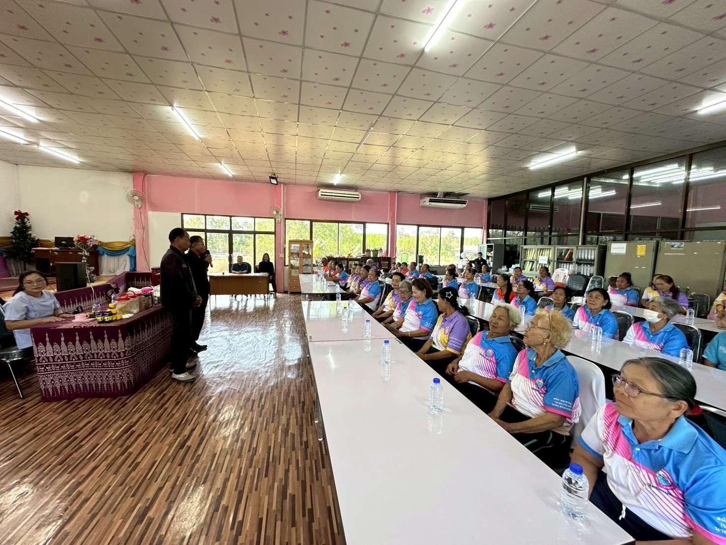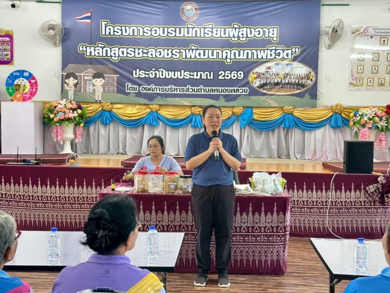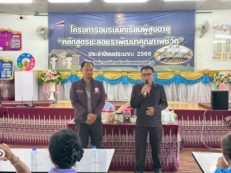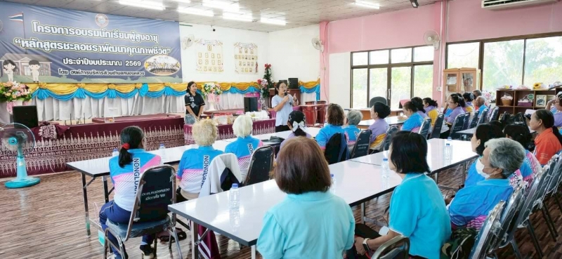 วันที่ 10 มีนาคม 2569 เวลา 08.30 น. นางสรารัตน์ ศรีอุดร นายกองค์การบริหารส่วนตำบลหนองหลวง มอบหมายให้ นายสมใจ ป้องคำไหล รองนายกองค์การบริหารส่วนตำบลหนองหลวง นายอนุวัฒน์ มะโนราช รองนายกองค์การบริหารส่วนตำบลหนองหลวง ร่วมเป็นเกียรติเปิดเรียนโรงเรียนผู้สูงอายุ อบต.หนองหลวง ประจำเดือน มีนาคม ภายใต้โครงการอบรมนักเรียนผู้สูงอายุ “หลักสูตรชะลอชราพัฒนาคุณภาพชีวิต” ประจำปีงบประมาณ 2569 โดยกองสวัสดิการสังคม นางสาวเยาวนาถ ศรีตะบุตร ผอ.กองสวัสดิการสังคม มีกิจกรรมหน้าเสาธง กายบริหาร และเข้าสู่บทเรียนในหัวข้อเรื่อง “นวดแผนไทยและการประคบสมุนไพร” ณ อาคารศูนย์พัฒนาคุณภาพชีวิตและส่งเสริมอาชีพผู้สูงอายุตำบลหนองหลวง อำเภอเฝ้าไร่ จังหวัดหนองคาย