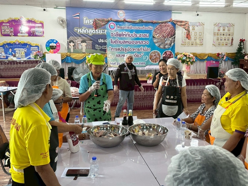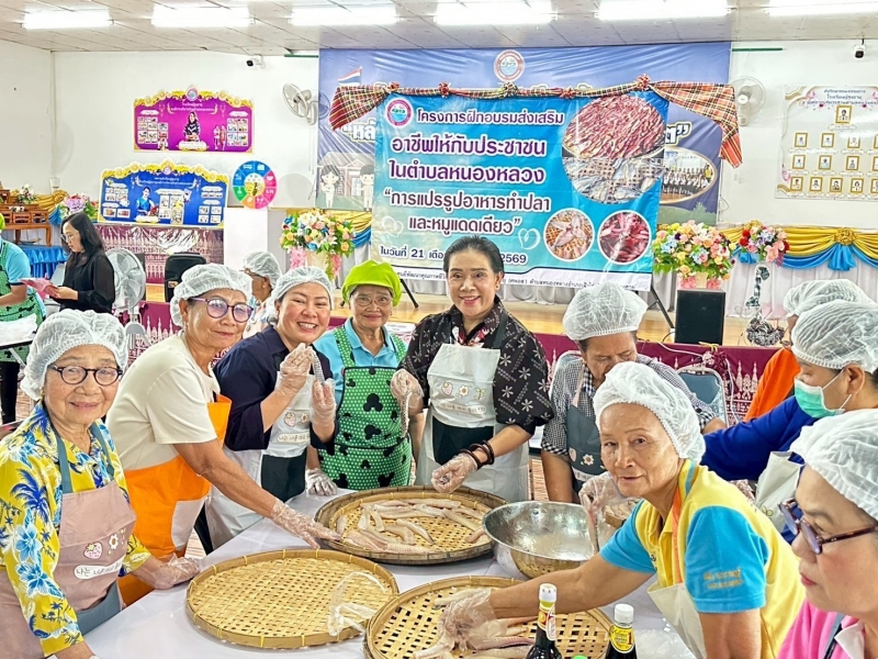 วันที่ 21 มีนาคม 2569 เวลา 08.00 น. นางสมัย ชนาราษฎร์ เลขานุการนายกองค์การบริหารส่วนตำบลหนองหลวง ร่วมเป็นเกียรติในโครงการฝึกอบรมส่งเสริมอาชีพให้กับประชาชนในตำบลหนองหลวง “การแปรรูปอาหารทำปลาและหมูแดดเดียว” ประจำปีงบประมาณ 2569 โดยกองสวัสดิการสังคม นำโดย นางสาวเยาวนาถ ศรีตะบุตร ผอ.กองสวัสดิการฯ โดยได้รับเกียรติจาก นางฌิชชา มณฑีรรัตน์ พัฒนาการอำเภอเฝ้าไร่ เป็นวิทยากร หัวข้อบรรยายเรื่อง “การพัฒนาคุณภาพผลิตภัณฑ์และยกระดับมาตรฐานผลิตภัณฑ์ชุมชนเพื่อจำหน่ายและสร้างอาชีพ โดยภายหลังเป็นกิจกรรมกลุ่ม เรื่อง การแปรรูปอาหารทำปลาและหมูแดดเดียว ณ อาคารศูนย์พัฒนาคุณภาพชีวิตและส่งเสริมอาชีพผู้สูงอายุ(ศพอส.)ตำบลหนองหลวง อำเภอเฝ้าไร่ จังหวัดหนองคาย