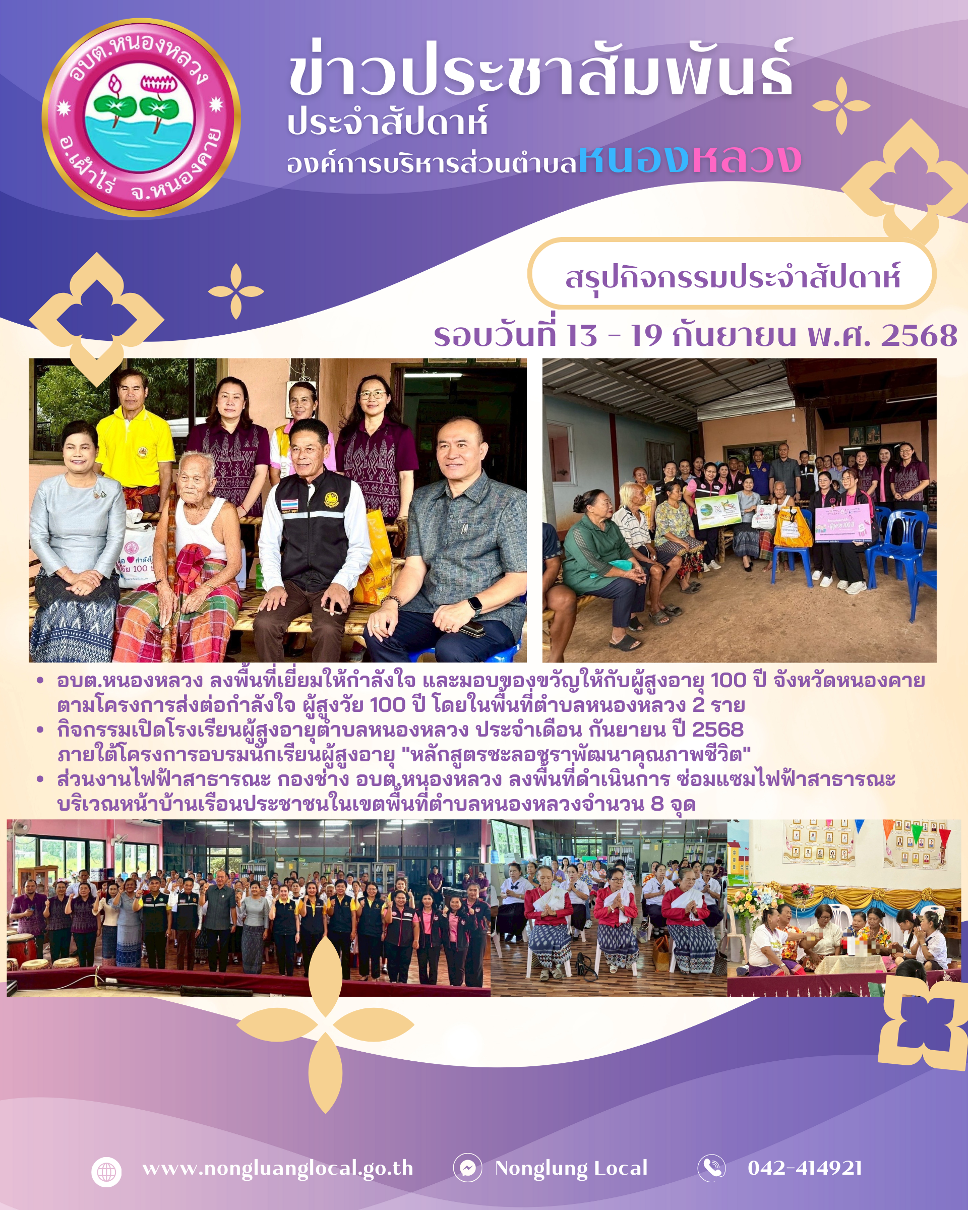 สรุปกิจกรรมประจำสัปดาห์ องค์การบริหารส่วนตำบลหนอง...