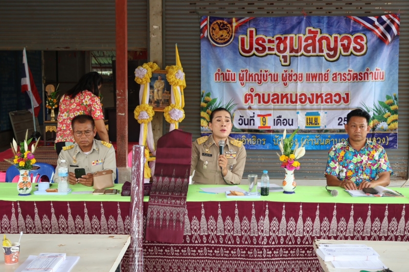 วันที่ 9 เมษายน 2567 เวลา 09.00 น. นางสมัย ชนาราษฎร์ นายกองค์การบริหารส่วนตำบลหนองหลวง พร้อมด้วย นายสมใจ ป้องคำไหล รองนายกฯ ร่วมการประชุมสัญจร กำนัน ผู้ใหญ่บ้าน ผู้ช่วย แพทย์ สารวัตรกำนัน ตำบลหนองหลวง นำโดย นายอิทธิกร บัวทอง กำนันตำบลหนองหลวง ร่วมกับผู้นำชุมชนตำบลหนองหลวง โดยมี ว่าที่ร้อยตรีพงษ์สิทธิ์ เปรยะโพธิเดชะ นายอำเภอเฝ้าไร่ เป็นประธานในการประชุม พร้อมด้วย นางวาสนา ศิริวงศ์ ปลัดอำเภอเฝ้าไร่ สำนักงานเกษตรอำเภอเฝ้าไร่ เป็นเกียรติเข้าร่วมประชุม ซึ่งในรอบนี้จัดขึ้นที่ บ้านศรีวิไล หมู่ที่ 12 ตำบลหนองหนอง ภายหลังการประชุม นางสมัย ชนาราษฎร์ นายกฯ ได้ประชาสัมพันธ์เกี่ยวกับการสนับสนุนผ้าลายอัตลักษณ์อำเภอเฝ้าไร่ (ลายนาคาเจดีย์) แก่ท่านผู้นำชุมชน พร้อมทั้งมอบเงินส่วนตัวสนับสนุนการประชุมเพื่อการพัฒนาชุมชนตำบลหนองหลวง ภายหลังได้ร่วมกับผู้นำชุมชนดำเนินกิจกรรม Kick Off หมู่บ้านป้องกันและแก้ไขปัญหายาเสพติด โดยกองทุนแม่ของแผ่นดิน ตามนโยบายกระทรวงมหาดไทย จำนวน 8 หมู่บ้าน ได้แก่ หมู่ที่ 2 , 3 , 4 , 7 , 11 , 13 , 15 และหมู่ที่ 17 พร้อมทั้งมีพิธีรดน้ำขอพรจากท่านพ่อเมือง ณ ศาลาประชาคมบ้านศรีวิไล ตำบลหนองหลวง อำเภอเฝ้าไร่ จังหวัดหนองคาย