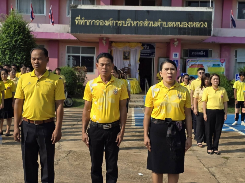 วันที่ 13 พฤษภาคม 2567 เวลา 08.00 น. องค์การบริหารส่วนตำบลหนองหลวง โดยการนำของ นางสมัย ชนาราษฎร์ นายกองค์การบริหารส่วนตำบลหนองหลวง พร้อมด้วย นายทวี กุลสุวรรณ์ นายสมใจ ป้องคำไหล รองนายกฯ นายสมใจ นัติพันธ์ ปลัด อบต.หนองหลวง นำหัวหน้าส่วนราชการ พนักงานส่วนตำบล เจ้าหน้าที่ อบต.หนองหลวง ดำเนินกิจกรรมเข้าแถวเคารพธงชาติ สวดมนต์ ไหว้พระ กล่าวคำปฏิญาณตนและวิสัยทัศน์ตำบลหนองหลวง ประจำวันจันทร์ ครั้งที่ 1 ของสัปดาห์ เดือน พฤษภาคม 2567 โดยได้สวมเสื้อสีเหลืองที่มีตราสัญลักษณ์ เนื่องในโอกาสมหามงคลเฉลิมพระชนมพรรษา พระบาทสมเด็จพระเจ้าอยู่หัวทรงพระเจริญพระชนมพรรษา 6 รอบ 72 พรรษา ทั้งนี้ นางสมัย ชนาราษฎร์ นายกฯ ได้พบปะ ให้โอวาท พร้อมมอบนโยบายการทำงานแก่เจ้าหน้าที่ทุกท่าน ณ ลานหน้าเสาธงที่ทำการองค์การบริหารส่วนตำบลหนองหลวง อำเภอเฝ้าไร่ จังหวัดหนองคาย