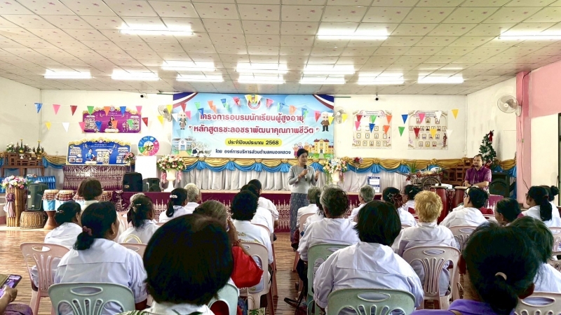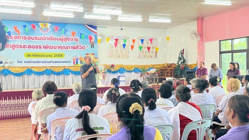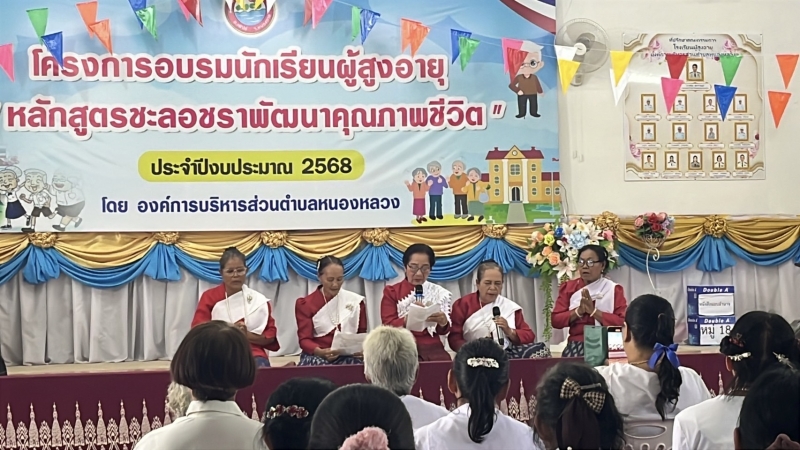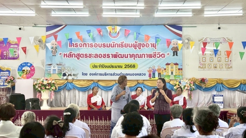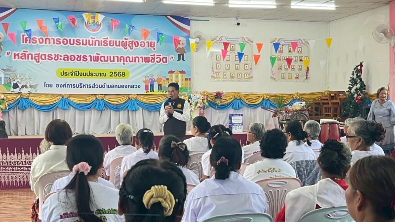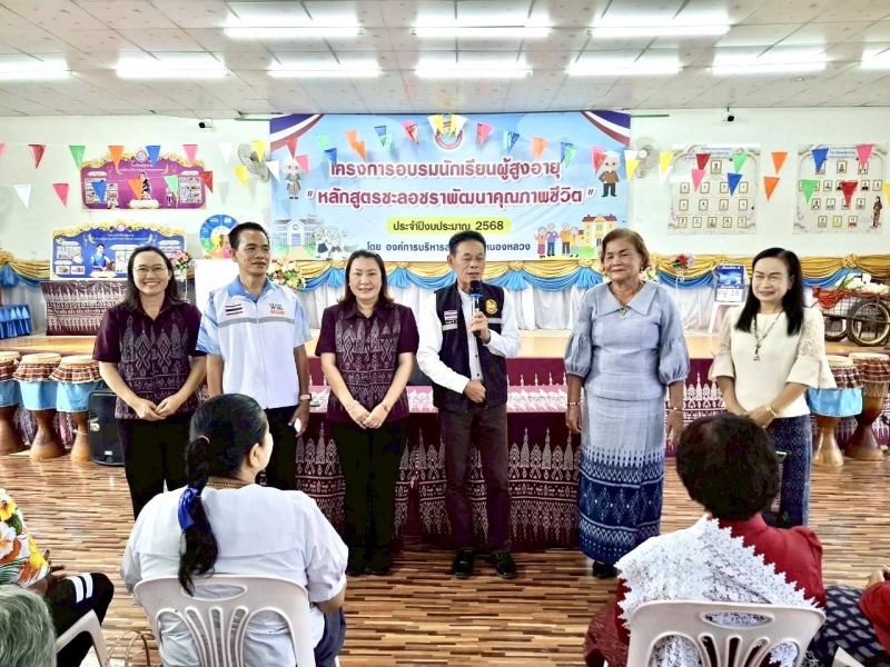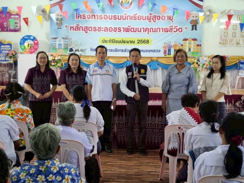 วันที่ 17 กันยายน 2568 เวลา 09.00 น. องค์การบริหารส่วนตำบลหนองหลวง โดยกองสวัสดิการสังคม ได้ดำเนินกิจกรรมเปิดโรงเรียนผู้สูงอายุตำบลหนองหลวง ประจำเดือน กันยายน ปี 2568 ภายใต้โครงการอบรมนักเรียนผู้สูงอายุ "หลักสูตรชะลอชราพัฒนาคุณภาพชีวิต" โดยได้รับเกียรติจาก นางสาวปราณี วงศ์บุตร รองผู้ว่าราชการจังหวัดหนองคาย พร้อมด้วย สนง.พัฒนาสังคมและความมั่นคงของมนุษย์จังหวัดหนองคาย ร่วมกับ สนง.เหล่ากาชาดจังหวัดหนองคาย ชมรมแม่บ้านมหาไทยจังหวัดหนองคาย และสนง.สาธารณสุขจังหวัดหนองคาย ร่วมเป็นเกียรติพบปะให้กำลังใจนักเรียนโรงเรียนผู้สูงอายุ อบต.หนองหลวง โดยมี ว่าที่ร้อยตรีพงษ์สิทธิ์ เปรยะโพธิเดชะ นายอำเภอเฝ้าไร่ นายทวี กุลสุวรรณ์ รองนายกองค์การบริหารส่วนตำบลหนองหลวง นางสาวเยาวนาถ ศรีตะบุตร ผอ.กองสวัสดิการสังคม ให้การต้อนรับ ซึ่งมีกิจกรรมในหัวข้อเรื่องการสร้างเสริมบุคลิกภาพและคุณค่าในตนเอง ดำเนินกิจกรรมโดย นางนรินทร์ ดวงภมร ข้าราชการครูบำนาญและคุณธรรมนำชีวิต (ละครคุณธรรม)โดย นางเนตร ธรรมขันธ์