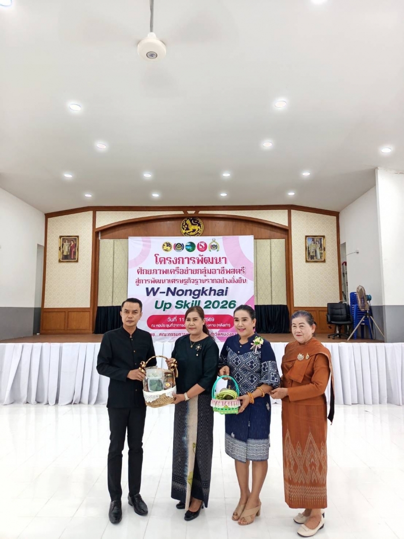นางสมัย ชนาราษฎร์ เลขานุการนายกฯ / ประธานคณะทำงานขับเคลื่อนกองทุนพัฒนาบทบาทสตรีจังหวัดหนองคาย / รองประธานคณะกรรมการพัฒนาสตรีจังหวัดหนองคาย ร่วมเป็นเกียรติใน "โครงการพัฒนาศักยภาพเครือข่ายกลุ่มอาชีพสตรี สู่การพัฒนาเศรษฐกิจ ฐานรากอย่างยั่งยืน" W -Nongkhai - Up Skill 2026 เพื่อพัฒนาศักยภาพกลุ่มอาชีพสตรี อีกทั้งยังเป็นการเสริมสร้างความรู้ ในการสร้างสรรค์ผลิตภัณฑ์ สู่ OTOP โดยมี นายจำลักษ์ กันเพ็ชร์ รองผู้ว่าราชการจังหวัดหนองคาย เป็นประธานในพิธีเปิด นางสุภา นันทะมีชัย ประธานคณะกรรมการพัฒนาสตรีจังหวัดหนองคาย กล่าวรายงาน มีนายประดิษฐ์ นัดทะยาย พัฒนาการจังหวัดหนองคาย และหัวหน้าส่วนราชการ หน่วยงาน เข้าร่วมในพิธีเปิดโครงการฯในครั้งนี้ด้วย โดยมีวัตถุประสงค์เพื่อให้ผู้หญิงไทย มีโอกาสแสดงถึงความรู้ ความสามารถ พร้อมทั้งก้าวทันยุคสมัย เทคโนโลยีที่เปลี่ยนไปและเป็นการส่งเสริม สนับสนุนภารกิจขององค์กรสตรี ในการขับเคลื่อนกิจกรรมตามนโยบายกระทรวงมหาดไทย ในการพัฒนาสินค้า OTOP สินค้าชุมชน และสินค้ากลุ่มอาชีพสตรีเพื่อยกระดับสร้างรายได้ให้ชุมชน ณ หอประชุมที่ว่าการอำเภอเมืองหนองคาย อ.เมืองหนองคาย จังหวัดหนองคาย