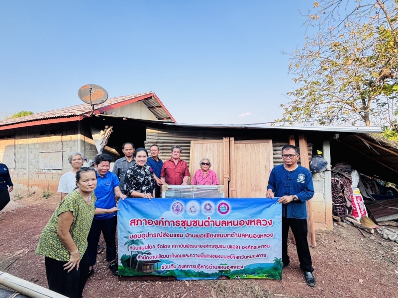 วันที่ 19 มีนาคม 2569 เวลา 16.45 น. คณะผู้บริหาร องค์การบริหารส่วนตำบลหนองหลวง ลงพื้นที่ร่วมกับ สภาองค์การชุมชนตำบลหนองหลวง มอบอุปกรณ์ซ่อมแซม บ้านพอเพียงชนบทตำบลหนองหลวง สนับสนุนโดย สถาบันพัฒนาองค์กรชุมชน (พอช) องค์กรมหาชน สำนักงานพัฒนาสังคมและความมั่นคงของมนุษย์จังหวัดหนองคาย ซึ่งได้ร่วมกับองค์การบริหารส่วนตำบลหนองหลวง มอบแก่ประชาชน บ้านโนนมันปลา หมู่ที่ 7 จำนวน 4 หลังคาเรือน