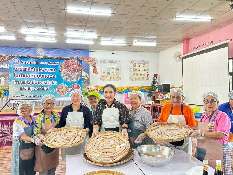 วันที่ 21 มีนาคม 2569 เวลา 08.00 น. นางสมัย ชนาราษฎร์ เลขานุการนายกองค์การบริหารส่วนตำบลหนองหลวง ร่วมเป็นเกียรติในโครงการฝึกอบรมส่งเสริมอาชีพให้กับประชาชนในตำบลหนองหลวง “การแปรรูปอาหารทำปลาและหมูแดดเดียว” ประจำปีงบประมาณ 2569 โดยกองสวัสดิการสังคม นำโดย นางสาวเยาวนาถ ศรีตะบุตร ผอ.กองสวัสดิการฯ โดยได้รับเกียรติจาก นางฌิชชา มณฑีรรัตน์ พัฒนาการอำเภอเฝ้าไร่ เป็นวิทยากร หัวข้อบรรยายเรื่อง “การพัฒนาคุณภาพผลิตภัณฑ์และยกระดับมาตรฐานผลิตภัณฑ์ชุมชนเพื่อจำหน่ายและสร้างอาชีพ โดยภายหลังเป็นกิจกรรมกลุ่ม เรื่อง การแปรรูปอาหารทำปลาและหมูแดดเดียว ณ อาคารศูนย์พัฒนาคุณภาพชีวิตและส่งเสริมอาชีพผู้สูงอายุ(ศพอส.)ตำบลหนองหลวง อำเภอเฝ้าไร่ จังหวัดหนองคาย