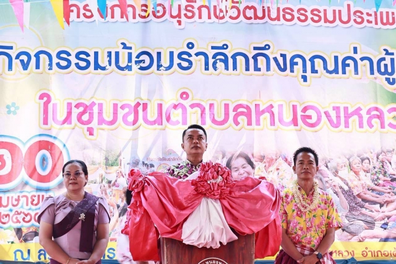 วันที่ 10 เมษายน 2569 เวลา 08.00 น. องค์การบริหารส่วนตำบลหนองหลวง จัดโครงการอนุรักษ์วัฒนธรรมประเพณี กิจกรรมน้อมรำลึกถึงคุณค่าผู้สูงวัย ในชุมชนตำบลหนองหลวง ประจำปี 2569 (รดน้ำดำหัวผู้สูงอายุ วันสงกรานต์)โดยมี นายจำลักษ์ กันเพ็ชร์ รองผู้ว่าราชการจังหวัดหนองคาย เป็นประธานในพิธีเปิด นายกฤตธัช ดาหา ปลัดอาวุโสอำเภอเฝ้าไร่ กล่าวต้อนรับประธาน นางสรารัตน์ ศรีอุดร นายก อบต.หนองหลวง กล่าวรายงานฯ พร้อมด้วย คณะผู้บริหาร สมาชิกสภาฯ ผู้นำชุมชน หัวหน้าส่วนราชการ พนักงานเจ้าหน้าที่ ภาคีเครือข่ายทุกภาคส่วน ตลอดจนผู้สูงอายุตำบลหนองหลวงทั้ง 20 หมู่บ้านร่วมในกิจกรรม โดยมีวัตถุประสงค์เพื่อสืบสานวัฒนธรรมไทย แสดงความกตัญญูกตเวทีต่อผู้สูงอายุ เสริมสร้างความอบอุ่นในครอบครัวและชุมชน อีกทั้งยังสร้างขวัญกำลังใจให้ผู้สูงอายุรู้สึกถึงคุณค่า ไม่ถูกทอดทิ้ง โดยมีกิจกรรมนันทนาการ การแข่งขันกีฬาที่เหมาะสมกับวัยของผู้สูงอายุ กิจกรรมรดน้ำดำหัวขอพรผู้สูงอายุ รดน้ำดำหัวขอพรคณะผู้บริหาร และได้แจกกระติกน้ำให้ผู้สูงอายุทุกท่าน เพื่อใช้ประโยชน์ โดยภายหลังการพบปะ อวยพรผู้สูงอายุเนื่องในวันปีใหม่ไทย ท่านประธานในพิธี ได้เป็นเกียรติเดินเยี่ยมชมอุโมงค์น้ำตำบลหนองหลวง พร้อมร่วมถ่ายภาพเป็นที่ระลึกเพื่อเชิญชวนประชาชนมาเที่ยวสวนสาธารณะเฉลิมพระเกียรติตำบลหนองหลวง อำเภอเฝ้าไร่ จังหวัดหนองคาย