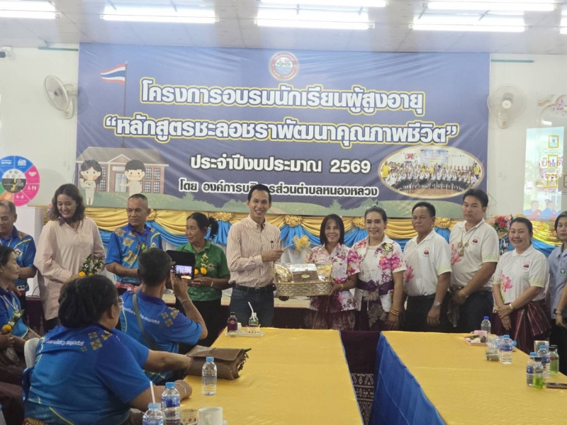วันที่ 21 เมษายน 2569 องค์การบริหารส่วนตำบลหนองหลวง โดยการนำของ นางสรารัตน์ ศรีอุดร นายกองค์การบริหารส่วนตำบลหนองหลวง พร้อมด้วยคณะผู้บริหาร สมาชิกสภาองค์การบริหารส่วนตำบลหนองหลวง หัวหน้าส่วนราชการ พนักงานเจ้าหน้าที่ ภาคีเครือข่าย ส่วนราชการที่เกี่ยวข้อง ตลอดจนนักเรียนโรงเรียนผู้สูงอายุตำบลหนองหลวง ร่วมให้การต้อนรับคณะศึกษาดูงาน องค์การบริหารส่วนตำบลปากดุก อำเภอหล่มสัก จังหวัดเพชรบูรณ์ โดยการนำของ นายนราธิป สุขเจริญ นายกองค์การบริหารส่วนตำบลปากดุก ซึ่งได้ขอความอนุเคราะห์นำคณะผู้สูงอายุ คณะบริหาร พนักงานส่วนตำบลและเจ้าหน้าที่องค์การบริหารส่วนตำบลปากดุก จำนวน 46 คน เข้าศึกษาดูงานเรื่อง “ชุมชนที่เป็นมิตรกับผู้สูงอายุ ซึ่งได้รับรางวัลระดับประเทศปี พ.ศ.2567 เพื่อส่งเสริมและพัฒนาศักยภาพผู้สูงอายุให้ได้รับความรู้อันเป็นประโยชน์ในการส่งเสริมคุณภาพชีวิตครอบคลุมในทุกๆด้านทั้งด้านสุขภาพร่างกาย จิตใจ อารมณ์ เป็นการสร้างขวัญกำลังใจให้แก่ผู้สูงอายุให้เปิดโลกทัศน์ ที่กว้างไกลมากขึ้นลดสาเหตุของการเป็นโรคซึมเศร้าในวัยผู้สูงอายุสามารถนำความรู้และประสบการณ์ใหม่ๆกลับมาขยายผลต่อกลุ่มอื่นๆ ณ องค์การบริหารส่วนตำบลหนองหลวง อำเภอเฝ้าไร่ จังหวัดหนองคาย